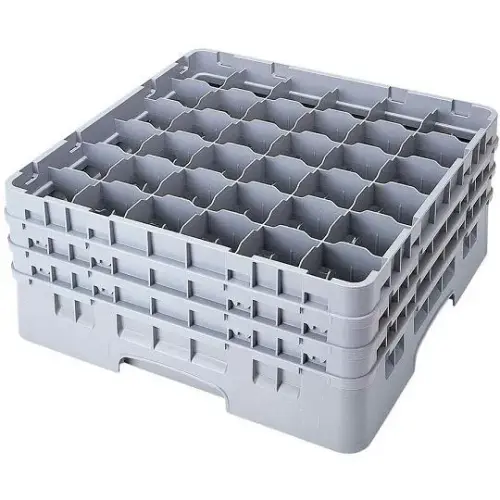 This Cambro Stemware & Tumbler Glass Rack - Camrack [36S418-167] is a dish rack for cups with 36 compartments. Each compartment can hold a cup with a max diameter size of 2 7/8 inches and a max height of 4 1/2 inches. This square shaped cup rack fits in most commercial dish washers and makes cleaning cups and other glassware extremely easy. Thanks to the polypropylene plastic used in this construction, this cup rack is extremely durable and heat resistant. Comes in a set of 5.