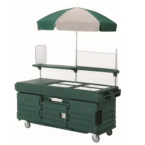 | Item: | Cambro KVC854U-519 - CamKiosk Green Vending Cart w/ Pan Wells and Umbrella |