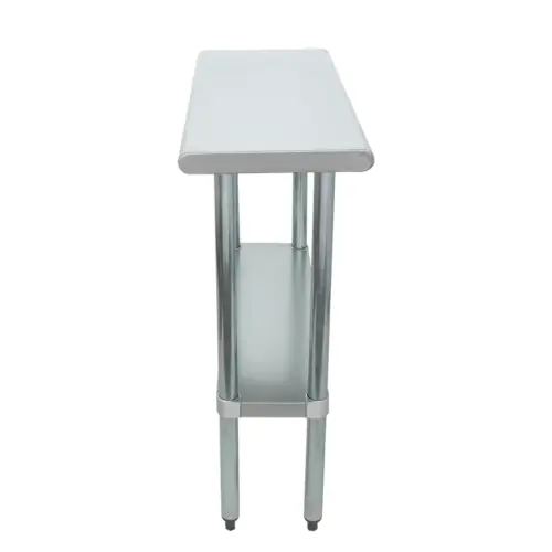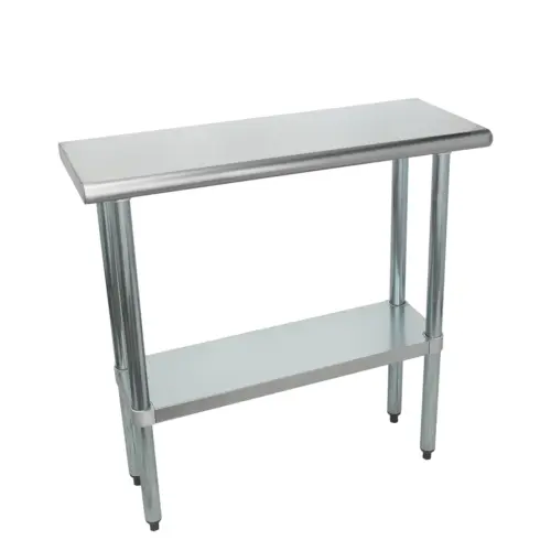 This commercial work table is a curved lip design with edges that are welded and grounded smooth, keeping your workplace safe.