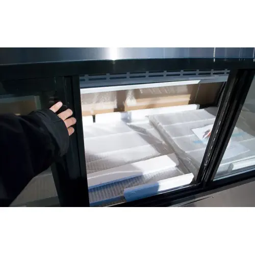 The bottom mounted 1/2 horsepower compressor is located in the back of the deli case, which makes the condenser coil easy to access. This increases energy efficiency, while providing a sleek flush design.