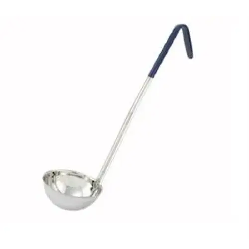 This Winco Color-Coded Ladle, 8 Ounce, One-Piece, Blue [LDC-8] is the perfect tool for your kitchen . A ladle is a very versatile utensil as it can be used during the whole dining process, from beginning to end. This heavy-duty ladle is built to last and will prove to be a durable product. This ladle is rust proof and give your commercial kitchen establishment the versatility it needs.